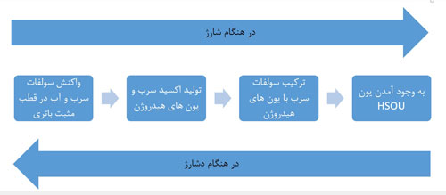 چگونگی کارکرد باتری سیلد اسید به زبان ساده بدین شرح است که با قرار دادن دو فلز غیر هم نام (که الکترود نامیده می شوند) در مایع اسید (الکترولیت) جریان الکتریکی برقرار خواهد شد. به بیان تخصصی تر، الکترود مثبت، یون های با بار منفی را به خود جذب می کند و این یون ها با الکترون مثبت (اکسید سرب) واکنش می دهند که در نتیجه پتانسیل الکتریکی در دو قطب مثبت و منفی باتری ایجاد می شود در طراحی باتری سیلد اسیدی باید توجه داشت که جریان شارژ طوری تنظیم شود که باتری بتواند جذب انرژی را به خوبی انجام دهد. واکنش های شیمیایی در هنگام شارژ و دشارژ در شکل زیر نشان داده شده است: